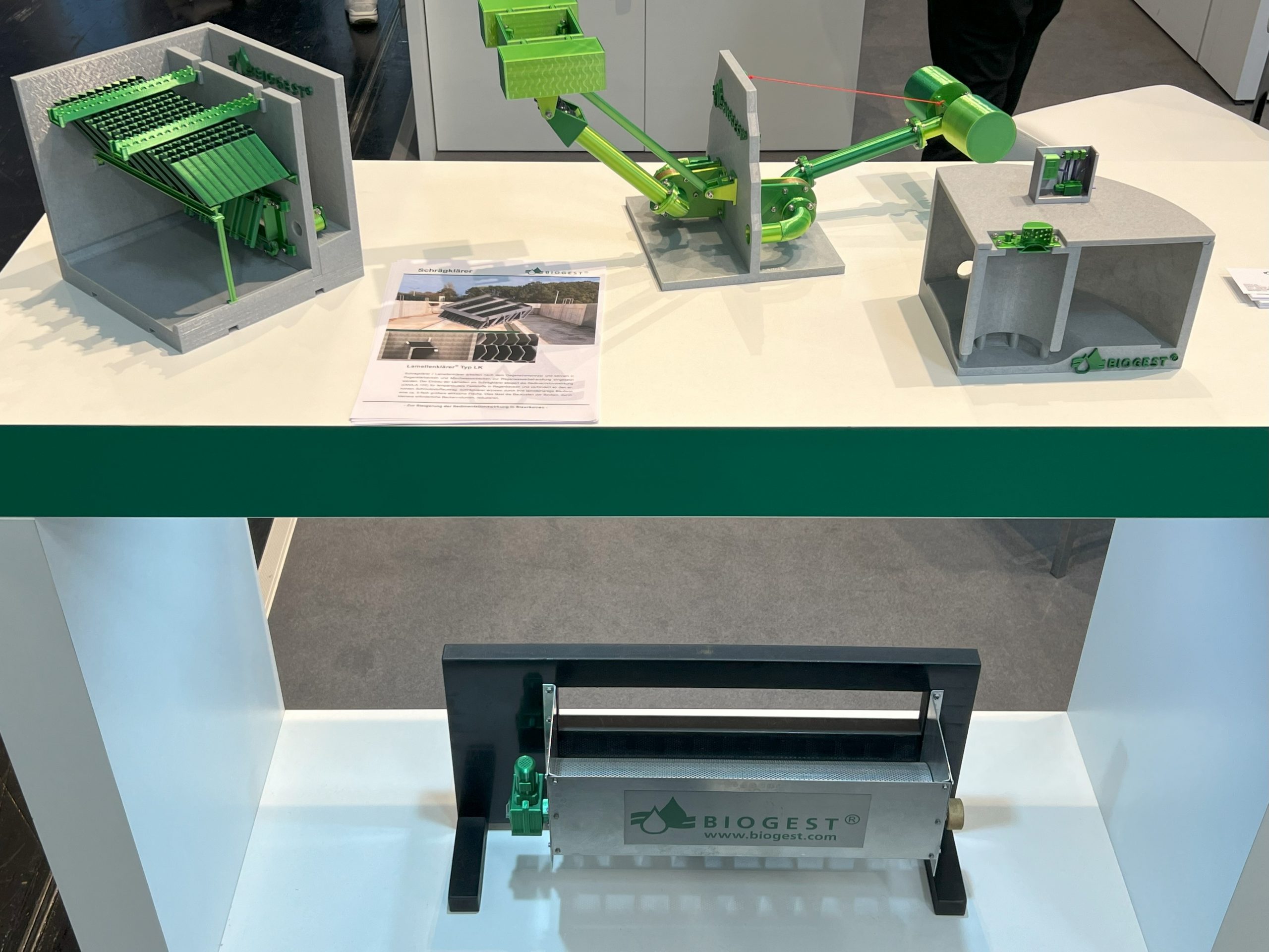 Besonderes Interesse galt unserem Lamellenklärer und den neuen Modellen aus dem 3D Drucker, welche die Lösungen anfassbar machten. Darüber hinaus war unsere große SBR Kläranlage in Mexiko mit knapp 400.000 EW das Highlight der Messe.