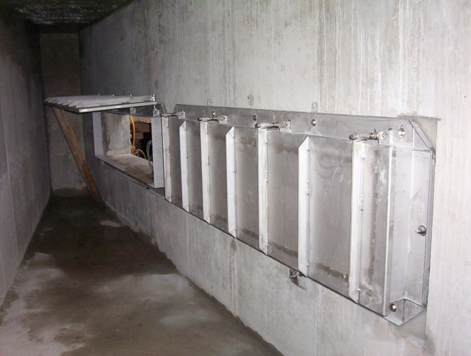 Die Rückstauschutzklappen schützen die Kanalisation vor Rückstau aus der Vorflut. Das Wasser drückt die Klappen in Fließrichtung zur Vorflut auf, so dass die Kanalisation entlastet wird. Steigt das Wasser in der Vorflut bis zur Rückstauschutzklappe oder höher an, wird die Klappe vom Wasser zugedrückt, so dass kein Wasser in die Kanalisation eindringen kann.