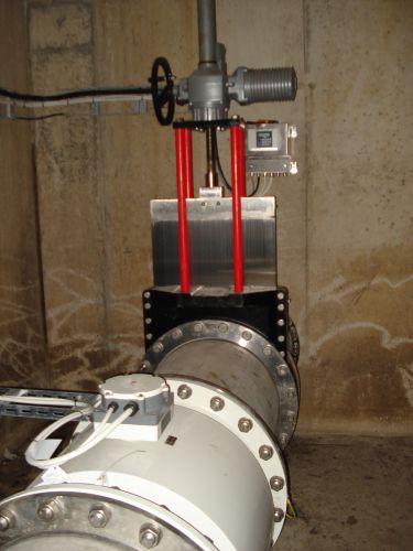 Tritt während des Regelvorgangs eine Verstopfung auf, wird hierdurch zwangsläufig die Abflussmenge reduziert. Dies wiederum führt zu einem automatischen Hochfahren der Schieberplatte – wenn erforderlich – bis zur Vollöffnung des Regelschiebers.